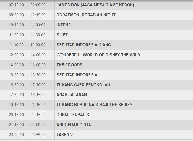 Schedule di atas masih disusun dalam nuansa lburan anak sekolah, sedangkan jadwal reguler yang biasa adalah seperti berikut ini: